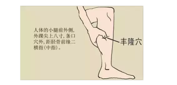 丰隆穴:小腿外侧,约小腿二分之一高度,与胫骨距离两横指宽之处,有消水肿,促进代谢的作用。
