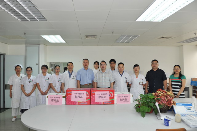 2016年9月9日上午,在第32个教师节来临之际,第一临床医学院组织开展了庆祝教师节慰问活动。第一临床医学院院长黄贵华、副院长钟远鸣带领院办、教学部等职能科室负责人到临床一线科室进行了看望和慰问。